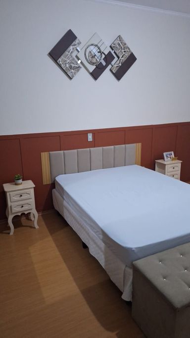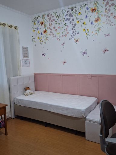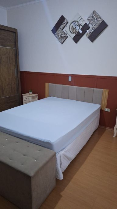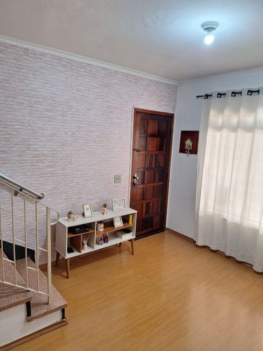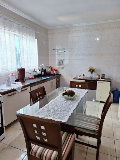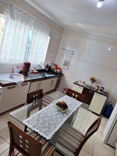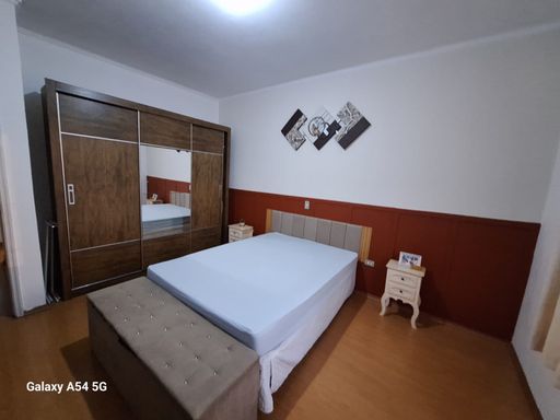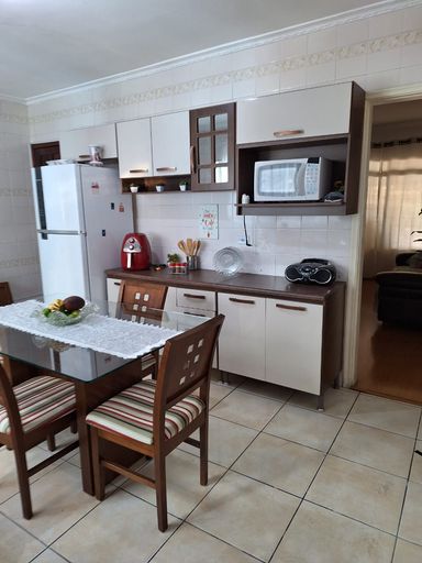 Sendo 2 Dormitórios, Sala, Cozinha e Banheiro. O sobrado conta com armários nos dormitórios e no banheiro, além de uma área de serviço e lavanderia. Possui 2 vagas de garagem coberta. Casa tem uma edícula com mas um quarto e um banheiro e uma área de serviço.
