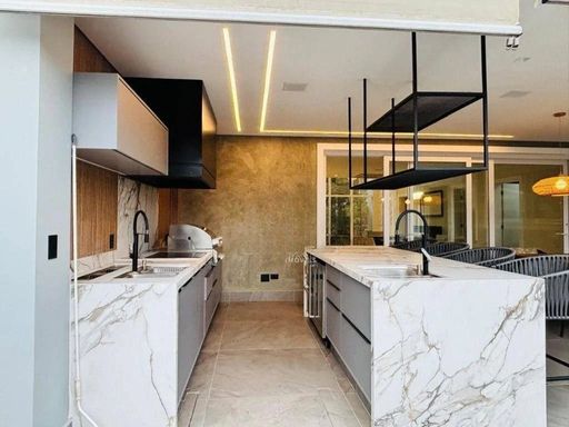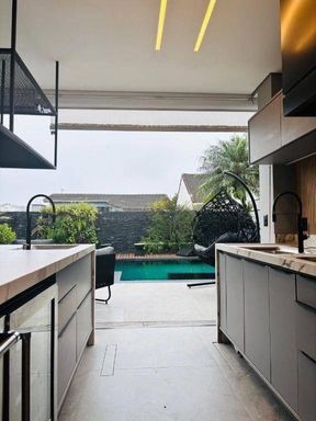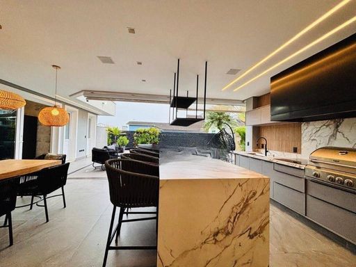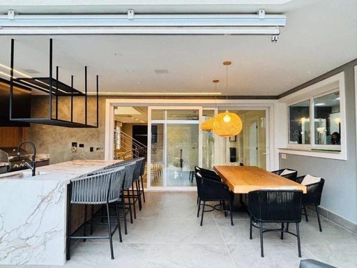 Na parte externa, o espaço gourmet é totalmente integrado à área social, proporcionando uma conexão incrível com o quintal, piscina e jardim. Um verdadeiro refúgio urbano, cercado de muito verde e privacidade.
