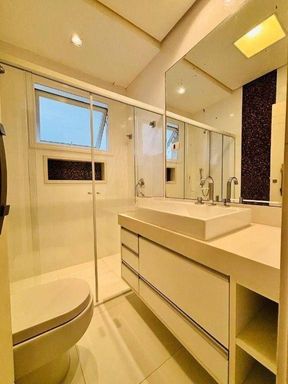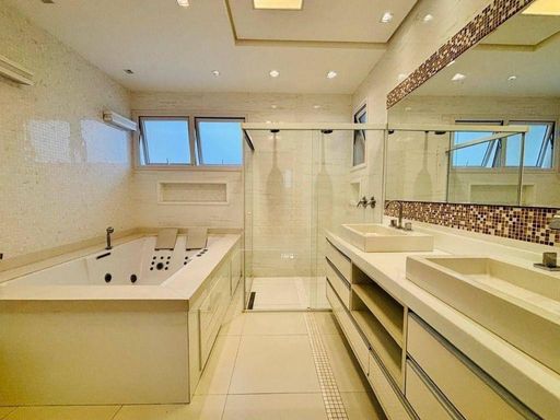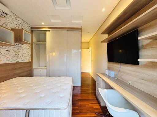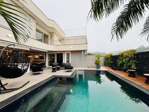 Uma residência imponente, perfeita para famílias grandes que valorizam conforto, privacidade e momentos inesquecíveis ao lado de quem amam. São 4 suítes, sendo uma máster com closet, hidromassagem e vista para a piscina. Todas as suítes possuem varanda, oferecendo iluminação natural e ventilação cruzada, com charme e elegância.