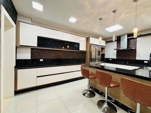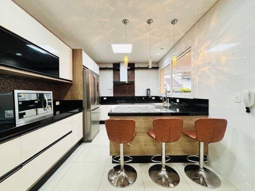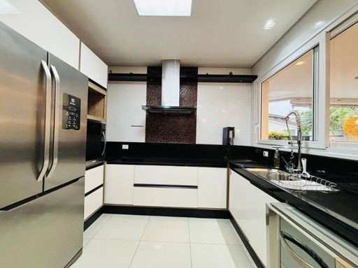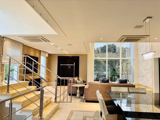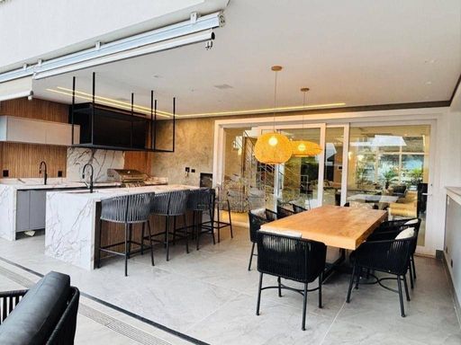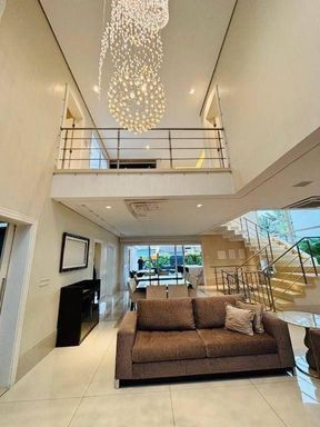 A casa conta com um belíssimo pé direito duplo, sala espaçosa para até 3 ambientes, escritório, salão de jogos completo e 1 suíte extra com copa ideal para hóspedes ou familiares que precisam de mais autonomia. A cozinha é ampla, com copa, armários planejados e despensa.